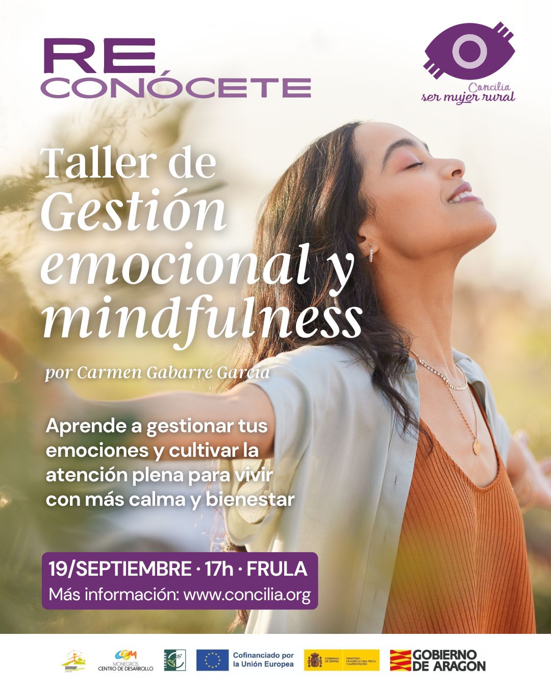 El próximo viernes 19 de septiembre a las 17:00 horas, Frula acogerá el taller “Gestión emocional y mindfulness: Herramientas prácticas para cultivar la calma y la claridad mental en un mundo acelerado”, a cargo de Carmen Gabarre García, enfermera y terapeuta transpersonal.